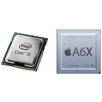 The Surface Pro 2 will contain a fourth-generation Intel Core i5-4200U dual-core 1.6GHz processor with 4 or 8 GB of RAM. Thanks to Intel's Haswell, Microsoft's high-end tablet will have all possible power-efficiency advantages plus the display horsepower of the Intel HD Graphics 4400 GPU (also known as Intel Iris) running at 200MHz. More on Surface Pro 2's graphics and display capabilities later. Apple's dual-core A6X ARM-based SoC runs at 1.4GHz with 1 GB. The new chip includes four PowerVP SGX 554MP4 GPUs clocked at 300MHz.