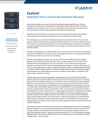ExaGrid provides Tiered Backup Storage with a unique disk-cache Landing Zone that enables fastest backups and restores, a repository tier that offers the lowest cost for long-term retention and enables ransomware recovery, and scale-out architecture which includes full appliances with up to 2.7PB full backup in a single system.