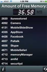 After download and installation, we opened the app and it provided a quick inventory of apps that were taking up memory; additionally, it provided basic device information including CPU speed, software version, and available storage. Step two was to push a refresh button, that zipped through the phone and cleaned up its extraneous use of device resources. Before using free memory, the iPhone reported 30.86 Mb of free memory; afterward it reported 36.58 Mb of free memory.