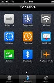 One user commenting at the AppStore called Battery Genius "misleading," and was disappointed that the Conserve feature buttons (shown) are there simply to offer advice. "I purchased the app so that I would have a better way to get to those features...the company should be more upfront about what functionality is provided with 'Conserve.' "