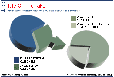 A research study completed by CMP Media's Technology Solutions Group speaks volumes on this issue. (CMP Media is the publisher of CRN.) Solution providers tell us that 69 percent of all sales are to current customers, signalling that 31 percent go to new accounts. Those figures indicate a healthy business, so if your own sales breakdown is close to those numbers, you are in good shape.