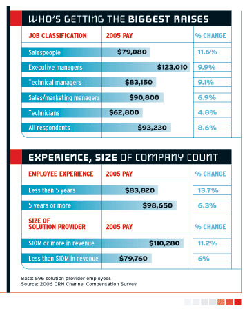 In those three categories, compensation rose faster last year than the average 8.6 percent reported by all employees in the 2006 CRN Channel Compensation Survey.