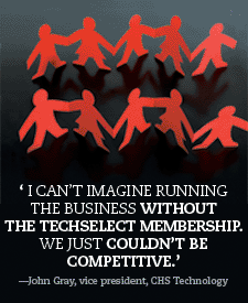 The knowledge that VARs get from teaming up is ultimately helping them become bigger forces to be reckoned with in the market. At CHS, Gray is betting that the service partnerships he forms through TechSelect will help him double his business over the next five years. “I am very optimistic,” he said. “The advantages we get from partnering are only getting bigger.”