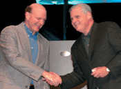 Done deal: Microsoft CEO Steve Ballmer with EMC President, CEO Joe Tucci.