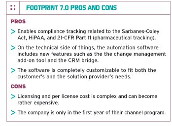 Many customers are being offered FootPrints-based solutions to run their operations because of its multiproject capability and its robust functionality. Another new functionality that has made a major improvement in this release is the change management add-on tool, which is a rules-based workflow and reporting engine that allows administrators to track all types of changes. This is the feature that really can help companies keep track of relevant compliance-related issues.