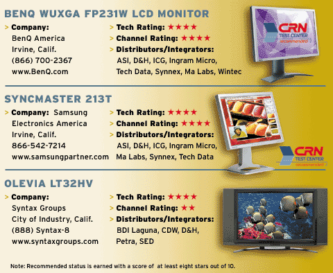 The CRN Test Center took a look at three different types of large-format LCDs from BenQ, Samsung and Syntax to see where they are best used.