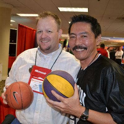 Mike Coffey (left) of Gravity Networks joins Brad Amano, solutions marketing manager at Eaton, for a game of hoop shots. Samsung earned the Overall Best In Show prize at the XChange Xcellence Awards.