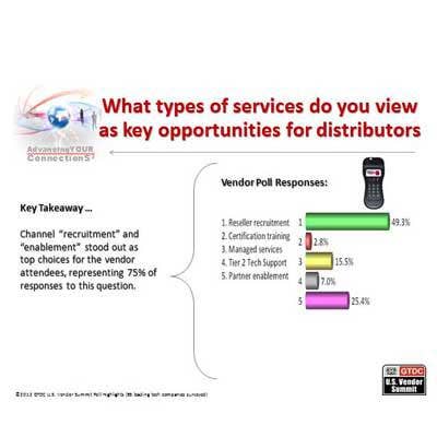 Nearly half of the executives said reseller recruitment is the top opportunity for vendors to leverage through distribution, according to the survey. And for current solution providers, distributors can help enable those partners too, executives said.
