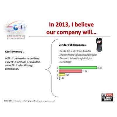 More than half of the vendor executives expect their percentage of sales through distribution to increase, perhaps not surprising because the execs were at a GTDC conference and already have strong relationships with distributors in most cases.