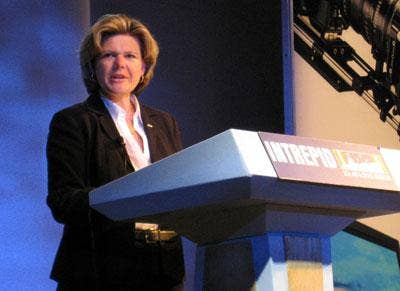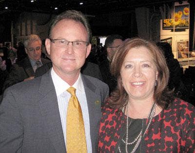 Poehler, left, steals a quick break in the action with Sheila O'Neill, vice president of channel sales for Panasonic Solutions Company. In a later interview with CRN, both Poehler and O'Neill emphasized helping Panasonic VARs sell more of the Panasonic portfolio and build advanced solutions in areas such as video surveillance and health care.