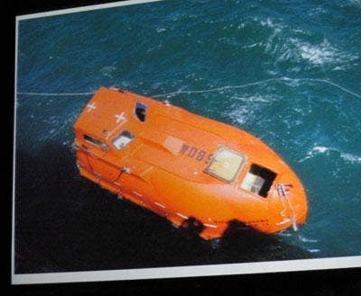 "These aren't just skills used around pirates on the seas, these are skills for life," Phillips continued, recounting his days spent on the lifeboat (pictured) and how he attempted to stay focused to counteract the "mind games" the pirates played with him.