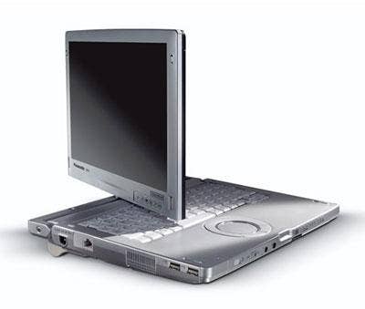 Another recent Toughbook addition is Panasonic's C1, which will be available in June. According to Panasonic, the C1, which it debuted at the Healthcare Information and Management Systems Society (HIMSS) conference in March, is the lightest 12.1" convertible tablet PC on the market and is good for deployments in health care, field services, sales and education. Of note its its triple hinge design -- the third hinge being what allows the screen to rotate into "tablet mode."