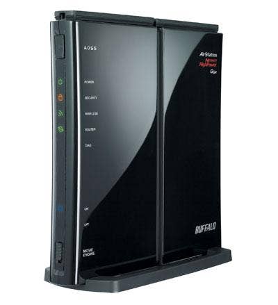 Buffalo Technology has been embroiled in a patent infringement lawsuit that has kept it from selling wireless gear in the U.S. since 2007. But now the wait is over. A federal judge in December stayed the injunction, opening the door for the company to re-enter the market, and it's wasting little time in doing just that. At CES 2009, Buffalo unveiled its new Nfinity line of home networking products. At the top of the line is the Wireless-N Nfinity High Power Router & Access Point (WZR-HP-G300NH), which includes a built-in amplifier the company said boosts performance and range. It can act as a router or an access point, and features an external switch to jump between the two modes. It will be available for an estimated street price of $99.99.