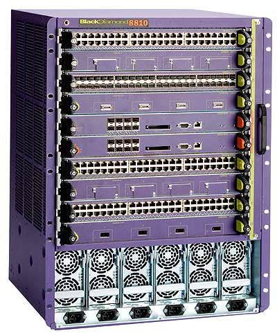 Extreme Networks brought out the BlackDiamond 8900 series modules for the BlackDiamond 8800 series switch (shown here is the BlackDiamond 8810). The architecture is designed for next-generation data centers and offers up to 582 10-Gigabit Ethernet ports in a single rack.