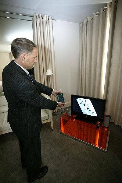 Robert Nalesnik of Broadcom demonstrates the latest high definition video technology, showing the amazing quality of video and movement that the company says will be common on cell phone handsets of the future. Now that cell phone streamed video technology is well underway, it's only a matter of time before we see the beta versions of flying cars, right?