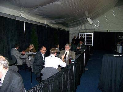 Most CIOs and business leaders in attendance mentioned that the chance to meet one-on-one with both vendors and Gartner analysts was what keeps them coming back to Healthcare Summit year after year. Here (center), a team gets an earful from Wes Rishel, vice president and distinguished analyst, Gartner (right, in gray suit).