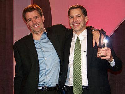 Microsoft took the prize for Best New Technology, and Randy Fusco, Microsoft's Chief Technology Officer, Microsoft Healthcare Provider Inudustry in the Healthcare and Life Sciences Group (left), was on hand to accept. At right, Juston McKinney, apparently Man of 1,000 Faces.