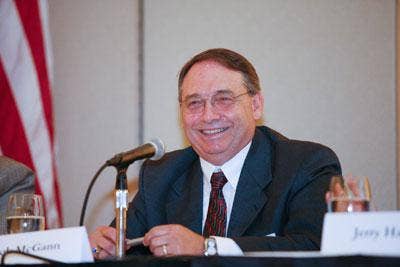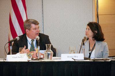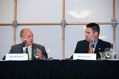 Cloud computing was among the big themes of the day. John Bordwine, (left), CTO, Public Sector for Symantec, and Robert Carey, CIO of the Department of the Navy, urged attendees to look past hype and approach discussions of cloud from a pragmatic, day-to-day use case viewpoint.