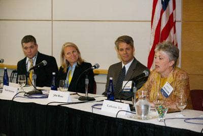 Strong opinions were the order of the day in a session on e-policy discovery and automation, including from (left to right) James Soliday, engineering manager for DLT Solutions; Annie Goranson, discovery attorney for Symantec; John Moses, director, coalition strategies division, Office of Environmental Information at the Environmental Protection Agency; and Catherine Teti, managing director for knowledge services and chief agency privacy officer at the Government Accountability Office.