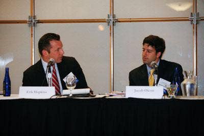 Erik Hopkins, professional staff, Federal Financial Management Subcommittee, Senate Committee on Homeland Security and Government Affairs, joined Jacob Olcott, counsel, Senate Committee on Commerce, Science and Transportation, and other panelists to talk "state of the cyber security union," and policy and pieces of legislation moving around Capitol Hill.